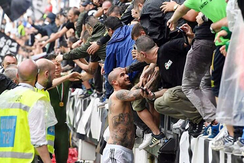 確かに「頭ポンポン事件」もありましたねー。あれ、「誤審」みたいにも言われていますが、実際に頭叩いたのは悪意を感じなくもないんですよね(笑)。そして、今シーズンのユベントス唯一の退場ですから、早くもユベントスの一員としての自覚が芽生えている、と言っても過言ではないですよね(笑)