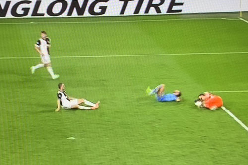 ※優勝の瞬間にパーヒャク、ピッチに立つ事ができないポヌッチ選手。キャプテン風味としてチームを引っ張って来ただけに、さすがに可哀想だと思いませんでした。