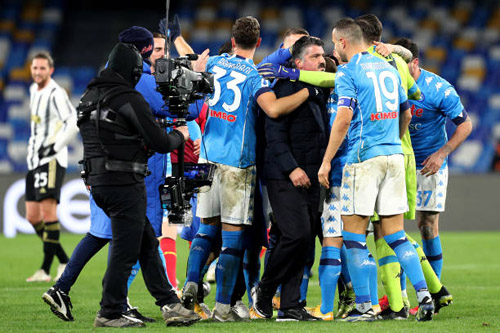 そしてその件についてはプレビューでもお伝えした通り、『ガッツさんのクビが掛かっていた』と言う事も影響していたと考えておりまして、この試合後の一枚を見てもそれは明らか。もちろん優勝戦線に残る為には「負けられない一戦」であった事は間違いないものの、しかしガッツさんの去就を考えれば、チームが一丸となって勝ちに行った事はこの試合で見せたナポリの姿勢からも感じ取れました。