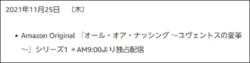 Amazon Prime Videoでの編集長的人気シリーズである「All or Nothing~ユベントス編」(※シティ編、スパーズ編がサイコーだった)。