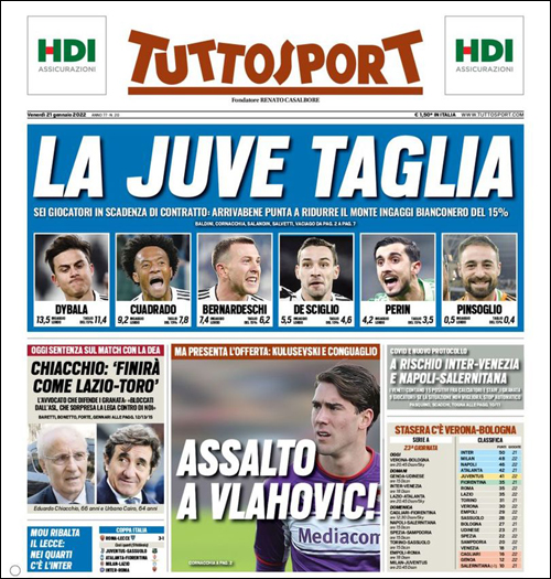「編集長、ついに目も悪くなっちゃったのか」って思われるのが嫌なので先にお伝えしておきますと、今回TuttoSportが「今シーズン限りで契約満了となる6選手」として紙面で6選手の画像を載せているのですが、ピンちゃんの契約は2023年6月まで。まだ1年半あるんですよ。なんで、月ユベのタイトルは「契約満了‘’5選手‘’」となっています。決して間違いじゃないんです。