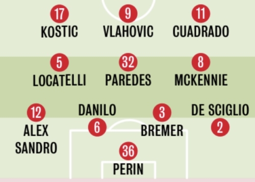 って事で、前節スペツィア戦はキンタ、タカシ、ウッディの活躍などもあり勝ち点3を手にしたユベントスですが、次のフィオレンティーナ戦について、現地Gazzettaが早速スタメン予想を掲載していたので、ご紹介させて頂きます。
