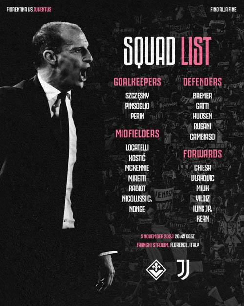 アウェイのフィオレンティーナ戦に臨む帯同メンバーが発表されました。