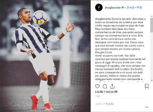 そしてユベントスからコスタるんへのペナルティも課されると思われますが、まずはイタリアサッカー協会の裁定を見た上でユベントスはそれにプラスする事を考えているようす。心配された「自主的な(チャンピオンズリーグでの)出場停止」ですが、チームとしてそれは考えておらずペナルティは罰金のみで、バレンシア戦にも帯同する予定との事です。
