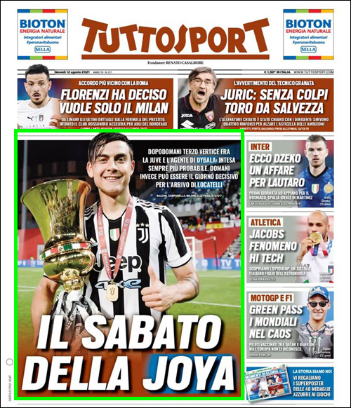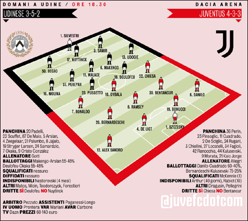ディバラ、サンドロ、ベンタンクール、クアドラード、ダニーロの南米代表組は、インターナショナルウィークに組まれているワールドカップ予選が終わり次第、プライベートジェットでトリノに帰還する。試合開始の24時間前にチームに合流し、そのままナポリ戦に帯同する事になるだろう。