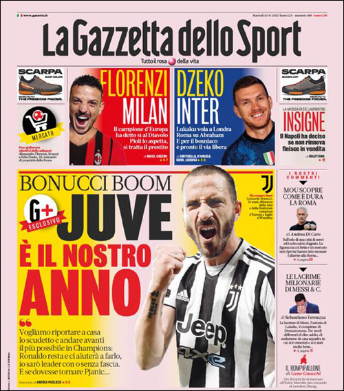 (Gazzetta)ボヌッチ:「スクデットをトリノに持ち帰りたい」