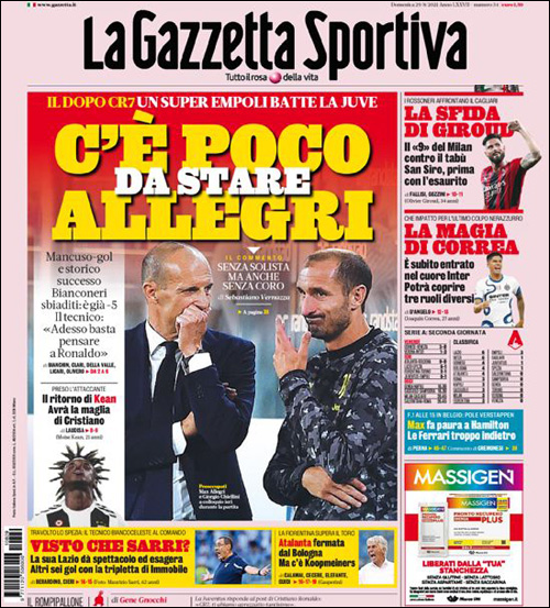 CR7が抜けた最初の試合、アッレグリに幸せは訪れなかった。スーパー・エンポリに敗れる。ビアンコネリは色褪せた。トップから5ポイント差。
